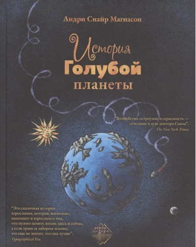 На Голубой планете нет взрослых, она населена детьми, которые делают всё, что им заблагорассудится, и никто не указывает им, как надо жить. Однажды на планету детей приземляется загадочный человек, и начинают происходить чудеса. Прогремевшая на весь мир повесть исландского писателя Андри Снайра Магнасона начинается как невинная сказка и перерастает в философскую притчу о современном мире. Почему нельзя всегда быть счастливым? Хорошо ли, если все желания начнут исполняться? Что такое вой на? Почему одним всё, а другим ничего? Книга получила рекордное количество наград в Исландии и за рубежом, в том числе Британскую национальную книжную премию, Международную премию им. Януша Корчака, Американскую международную премию «Зеленая планета», а недавно была выбрана лучшей детской книгой в Китае. «История Голубой планеты» издана более чем в 35 странах мира, а также поставлена на сцене в нескольких детских театрах разных стран.