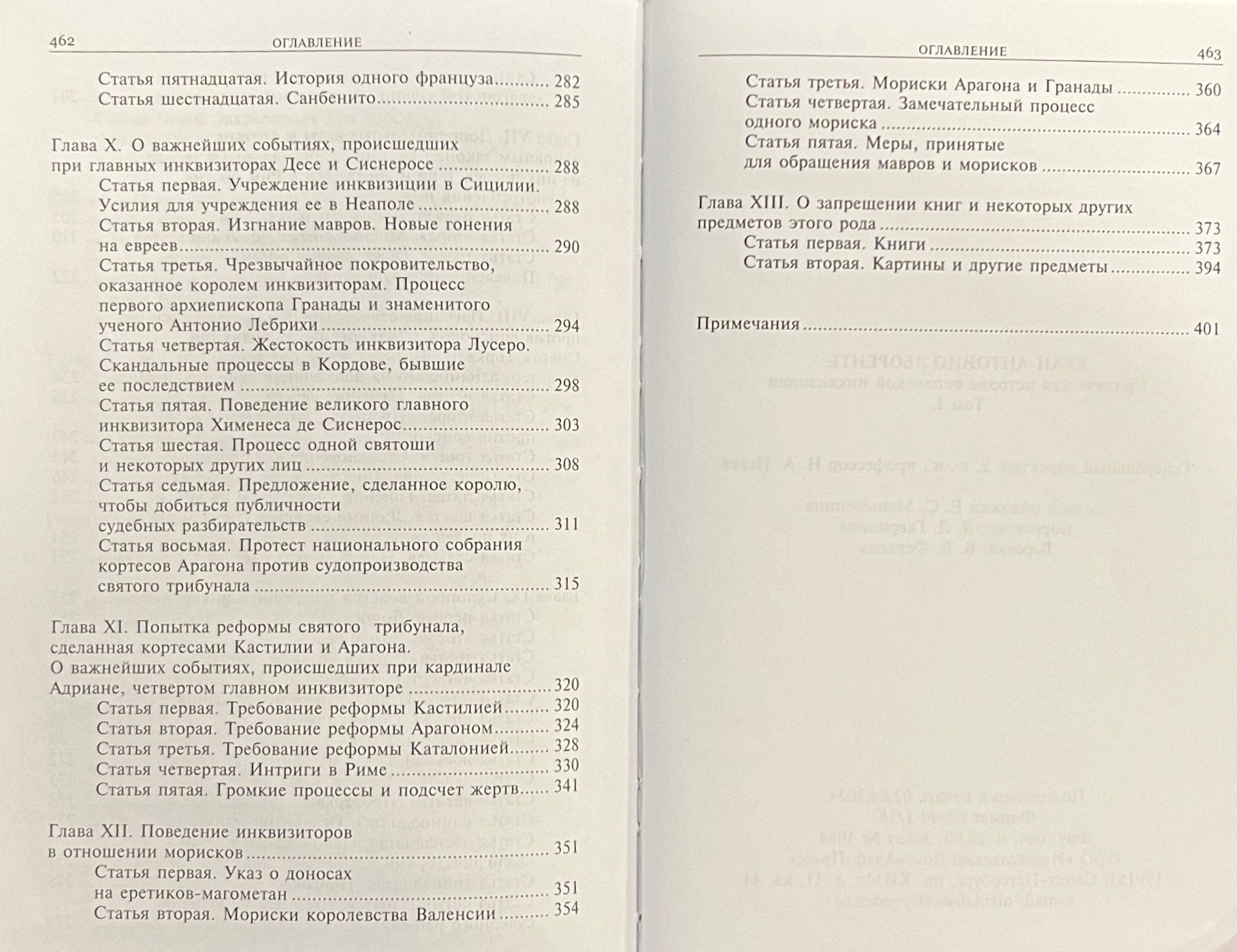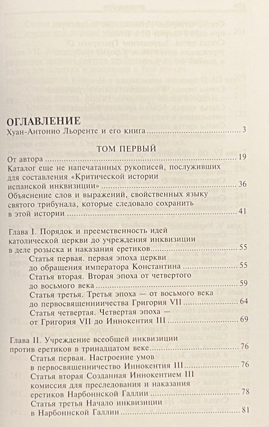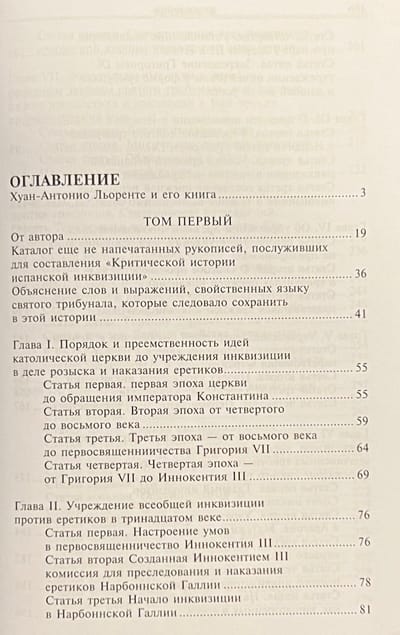 Книга Х. А. Льоренте «История испанской инквизиции» сразу после первой публикации в Париже (1817) была переведена на несколько языков и выдержала ряд изданий. Причина такого интереса к работе Льоренте, секретаря испанской инквизиции, заключается, несомненно, в обилии подлинного фактического материала, легшего в основу книги. Внимательно изучив архивные документы, церковные летописи и мемуары современников, автор сумел создать полную и правдивую историю святого трибунала со времени его возникновения и до начала XIX века. Эта интереснейшая историческая эпоха всегда привлекала внимание как специалистов, так и широкого круга читателей. На русском языке книга Льоренте была опубликована в 1936 году с изъятием ряда глав. В данном издании текст восстановлен полностью.