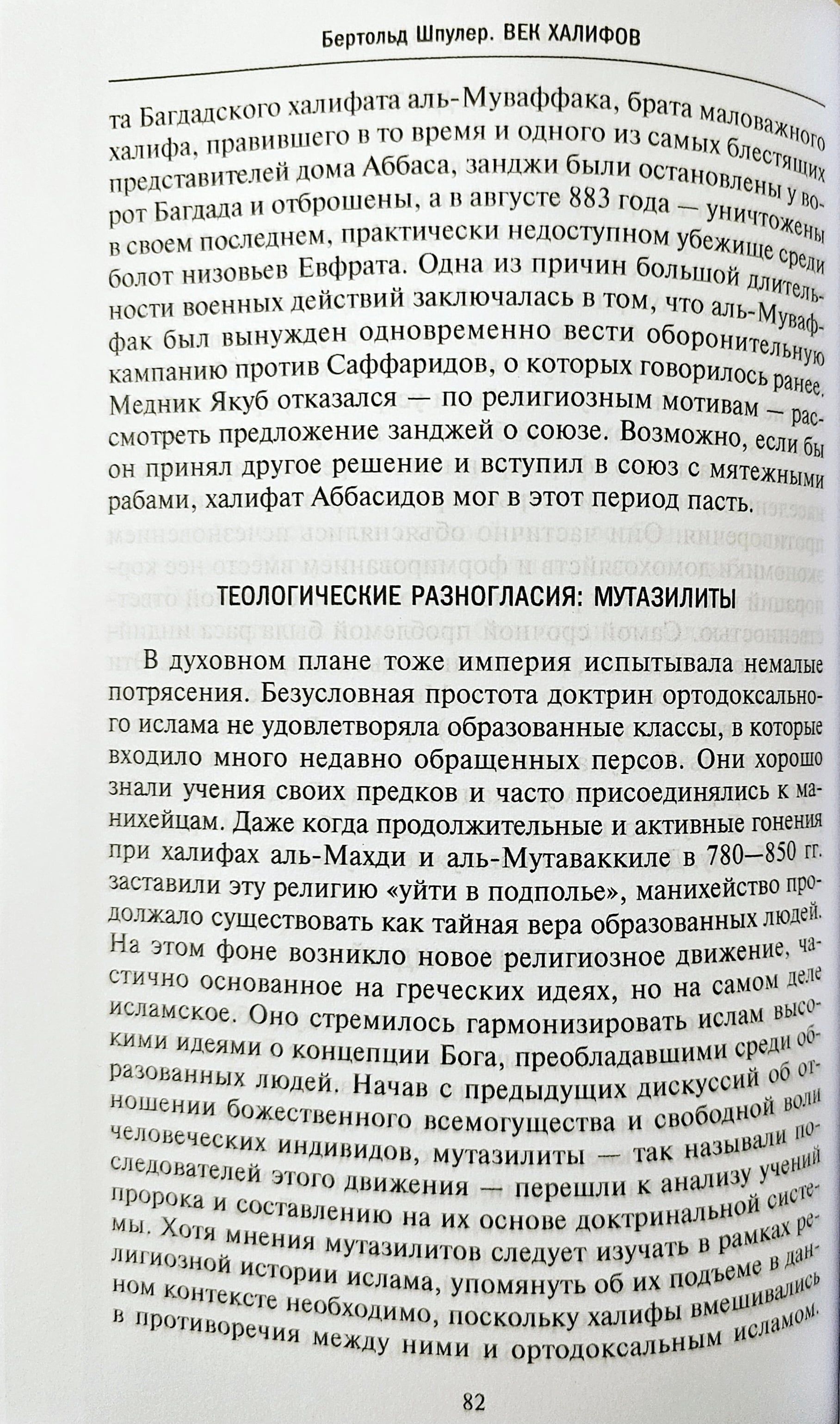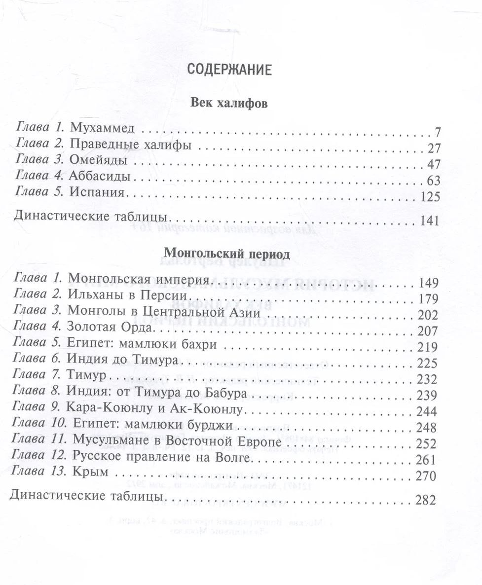Бертольд Шпулер – немецкий историк, востоковед, тюрколог, один из ведущих экспертов по истории ислама, представляет историю исламской цивилизации — «Век халифов», как глобальное явление, выходящее за пределы доктрин мусульманской религии, включающее культурное наследие, в которое внесли больший или меньший вклад все мусульманские круги. Шпулер повествует о взлете и падении как великих династий Омейядов, Аббасидов, так и мало известных династий Насридов, Хафсидов и других. Он также обращает внимание на испанский ислам, особенно подчеркивая его самобытность. «Монгольский период» – это история монголов и стран, с которыми они устанавливали контакты и вступали в конфликты: Великая Монгольская империя (Чингисхан и его преемники), государство ильханов Персии, монголы в Центральной Азии, Египет мамлюков, Тимур, Индия до и после Тимура. Автор пишет о мусульманах в Восточной Европе и на русских территориях. Его труд упорядочен, интересен и понятен.