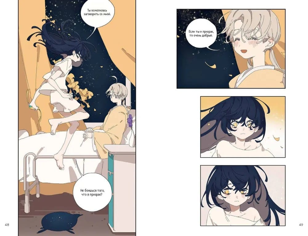 Но однажды она повстречала Сяосяо — слепую девочку, способную чувствовать ее присутствие. К чему приведет знакомство, начавшееся с конфет? Трогательный комикс о дружбе, жизни и исцелении.