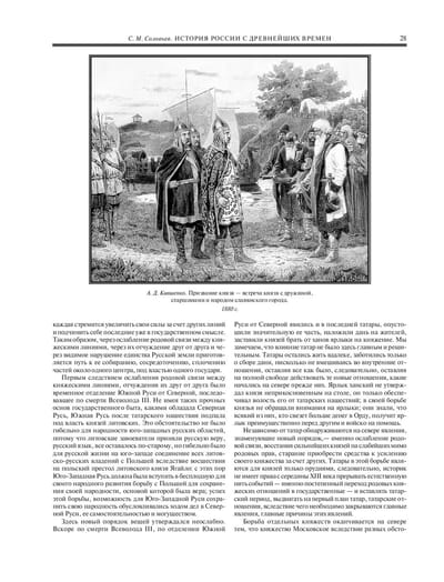 Для исторической науки «История России с древнейших времен» Сергея Михайловича Соловьева (1820–1879) стала явлением истинно мирового масштаба. На создание этого фундаментального труда ученый затратил 30 лет неустанной ежедневной работы, вложив в него весь свой незаурядный многогранный талант. «История России с древнейших времен» отличается основательностью концепций, обоснованностью аргументов, весомостью доводов, ясностью мысли, четкостью формулировок. Соловьев ввел в научный оборот термины «Новгородская Русь», «Киевская Русь», «Владимирская Русь», «Московская Русь», которыми он обозначил временные периоды становления Российского государства; показал государственную централизацию как процесс, тесно связанный с борьбой против нашествия монголов; раскрыл историческую преемственность древних князей и царской власти; объяснил поступательное движение русского народа на Восток и роль России в жизни азиатских народов; впервые очертил главные черты и форму исторического развития русской нации. Именно поэтому монументальному труду С. М. Соловьева выпала особая «научная судьба»: долгая книжная жизнь и широкий круг благодарных читателей. Издание богато иллюстрировано редкими историческими материалами, снабжено примечаниями и комментариями, а также подробным именным указателем.