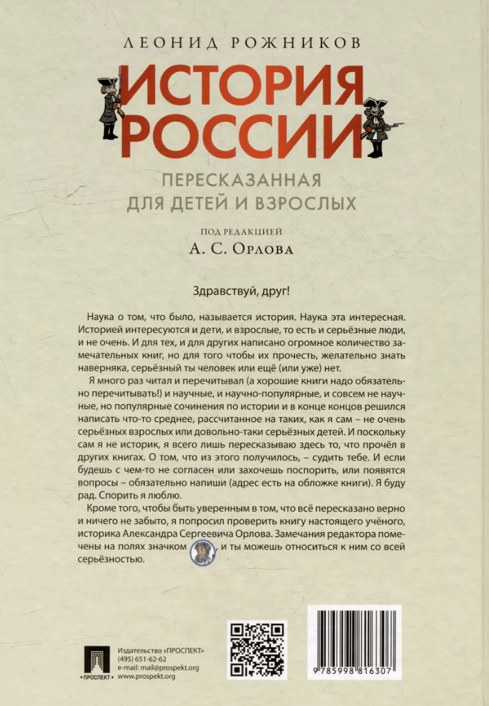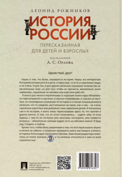Задуманная как подражание «Сатирикону», «История России, пересказанная для детей и взрослых» так же последовательно и в пародийном ключе описывает события, происходившие на территории страны, со времен появления здесь мамонтов и первых людей, но, в отличие от знаменитой книги сатириконцев, рассчитана в первую очередь на молодого читателя. Авторская подача материала и антисерьезный стиль повествования не делают при этом книгу менее познавательной и интересной.