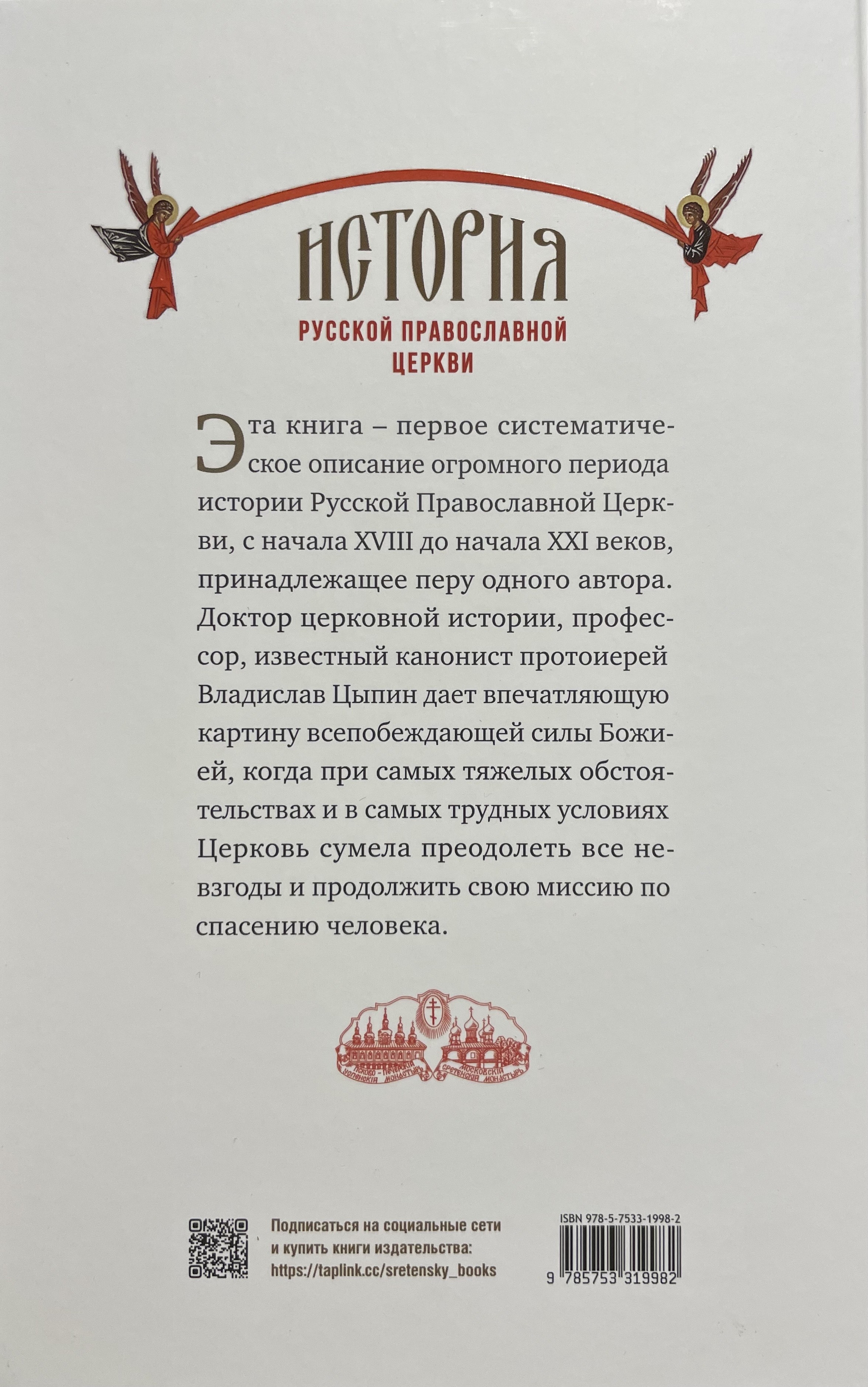 Книга «История Русской Православной Церкви: Синодальный и Новейший периоды (1700–2024)» — первое систематическое описание огромного периода истории Русской Церкви, с начала XVIII до начала XXI веков, принадлежащее перу одного автора. Доктор церковной истории, профессор, известный канонист протоиерей Владислав Цыпин дает впечатляющую картину всепобеждающей силы Божией, когда при самых тяжелых обстоятельствах и в самых трудных условиях Церковь сумела преодолеть все невзгоды и продолжить свою миссию по спасению человека.