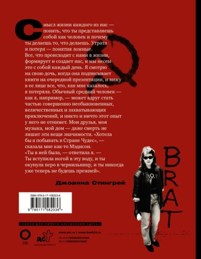 Американская певица, музыкальный продюсер, общественный деятель и роковая леди Джоанна Стингрей приехала в Ленинград в начале 80-х годов XX века. Десять с лишним лет ее жизнь неразрывно была связана с СССР, с миром советского андеграунда. Этот удивительный мир настолько поразил и вдохновил Джоанну, что она стала одним из самых известных популяризаторов советской и постсоветской рок-культуры на Западе.Две книги воспоминаний Джоанны Стингрей «Стингрей в Стране Чудес» и «Стингрей в Зазеркалье» теперь выходят в одном томе в новом оформлении и с новым предисловием автора, в котором Джоанна рассказывает о приезде в Россию в 2004 и 2018 году, своей дочери Мэдисон, процессе написания своих воспоминаний и многом другом, что волновало ее после возвращения в Америку.Прочитав их, вы узнаете, как все было на самом деле. Эта книга — бесценное свидетельство процесса становления и развития русского рока и арт-андеграунда в самый плодотворный его «золотой» период. Борис Гребенщиков и Виктор Цой, Юрий Каспарян и Сергей Курёхин, Костя Кинчев и Тимур Новиков, Африка и Коля Васин, Дэвид Боуи и Энди Уорхол и многие-многие другие герои сказочной Страны Чудес. Спустя тридцать лет Джоанна решила вернуться к этому яркому периоду своей биографии и рассказать обо всех перипетиях приключений в своей книге, это взгляд изнутри, не только свидетеля, но и непосредственного участника многих событий, которым было суждено стать историей. Ее воспоминания открыты и удивительно честны, это воспоминания о людях, которых она любила и продолжает любить.