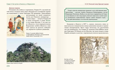 Параграфы учебника компактны, написаны простым, ясным, доступным для учащихся языком. Названия параграфов и пунктов, точно отражая суть содержания, звучат при этом как приглашения к увлекательному путешествию. Иллюстрации учебника зрелищны и оригинальны. Используются подлинные изображения, реконструкции, карты, графики. После каждого параграфа размещены переводы фрагментов документов средневековых хронистов (таких как Иордан, Прокопий Кесарийский, Григорий Турский, Северин Боэций и др.), а также арабские поэтические произведения, песни крестовых походов и так далее.