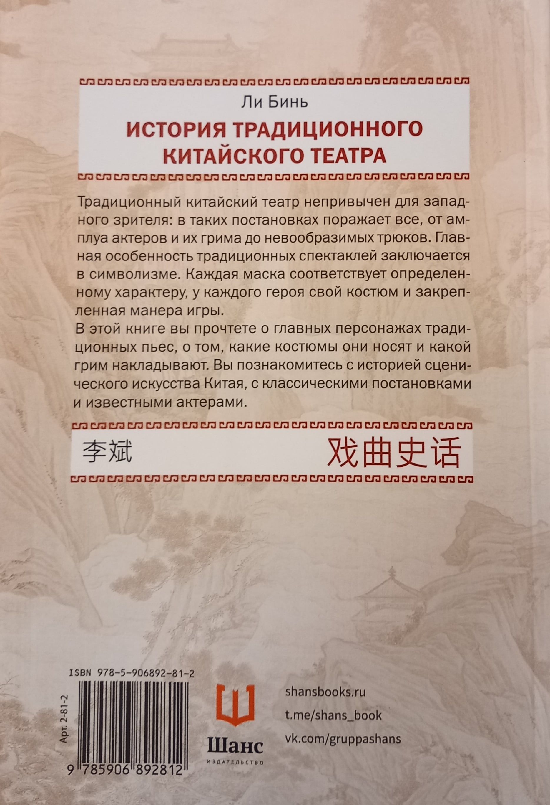 Автор рассказывает обо всем понемногу: о зарождении театрального искусства, о том, как появились разные виды опер (пекинская, сычуаньская и другие), в каких амплуа играют актеры, какими навыками они должны владеть и что за атрибуты спрятаны в специальных сундуках. Вы прочтете также о наиболее известных постановках и актерах традиционного китайского театра.
