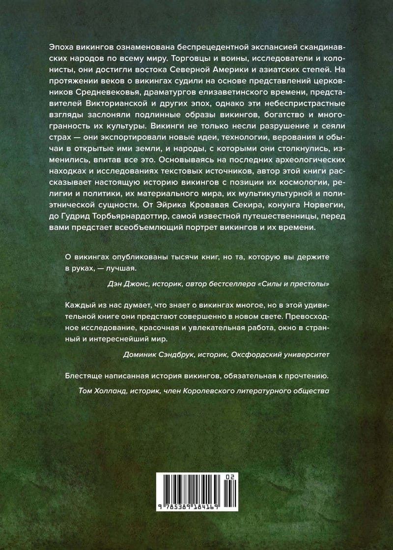 Немногие культуры древности вызывают столько же интереса, как культура викингов. Всего за три столетия, примерно с 750 по 1050 год, народы Скандинавии преобразили северный мир, и последствия этого ощущаются до сих пор. Викинги изменили политическую и культурную карту Европы, придали новую форму торговле, экономике, поселениям и конфликтам, распространив их от Восточного побережья Америки до азиатских степей. Кроме агрессии, набегов и грабежей скандинавы приносили землям, которые открывали, и народам, с которыми сталкивались, новые идеи, технологии, убеждения и обычаи. Выдающийся археолог с многолетним опытом Нил Прайс, основываясь на результатах археологических раскопок и полевых исследований, анализирует быт и мировоззрение викингов и отбрасывает глубоко укоренившиеся стереотипы. В сопровождении ученого и неутомимого практика мы проникнем сквозь века в далекое прошлое, чтобы увидеть викингов их собственными глазами: потомками первой пары людей, детьми Ясеня и Вяза. Эта книга, переведенная на несколько языков, снабженная картами, черно-белыми иллюстрациями и цветной вкладкой, содержит превосходный обзор и анализ источников и напоминает нам о том, что прошлое одновременно похоже и не похоже на привычную нам реальность. «В этой книге мы попытаемся взглянуть на мир глазами викингов. Мы будем рассматривать их жизни как неразрывное целое, сплавляющее религию, политику, поиск средств к существованию и все прочие аспекты бытия в общую картину реальности — то есть увидим, каким окружающий мир представлялся им самим. То, что для кого-то служит лишь историческими декорациями, на фоне которых разворачивались все завоевания и достижения викингов в большом мире, здесь составляет саму суть повествования». (Нил Прайс)