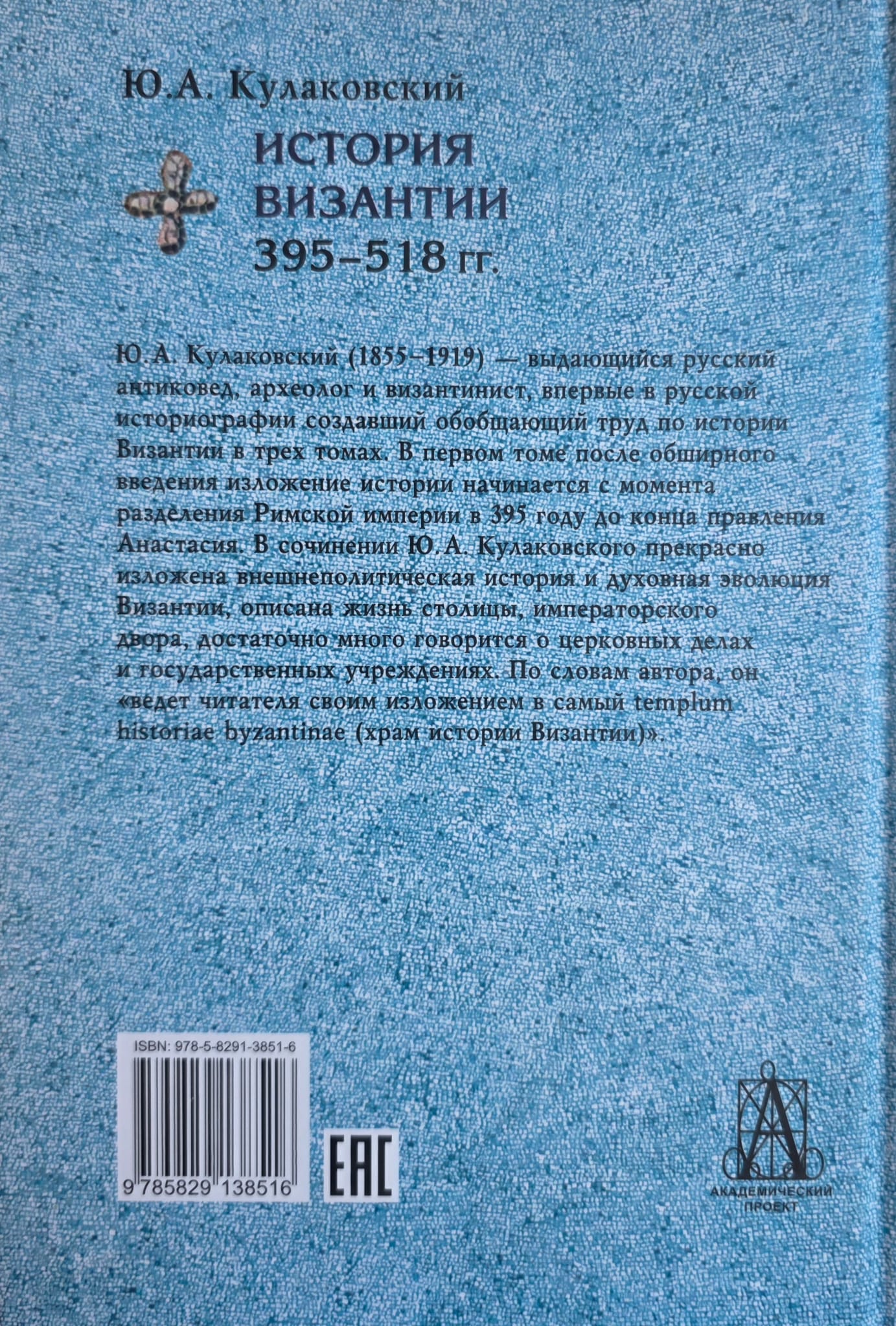 Ю. А. Кулаковский (1855-1919) - выдающийся русский антиковед, археолог и византинист, впервые в русской историографии создавший обобщающий труд по истории Византии в трех томах.