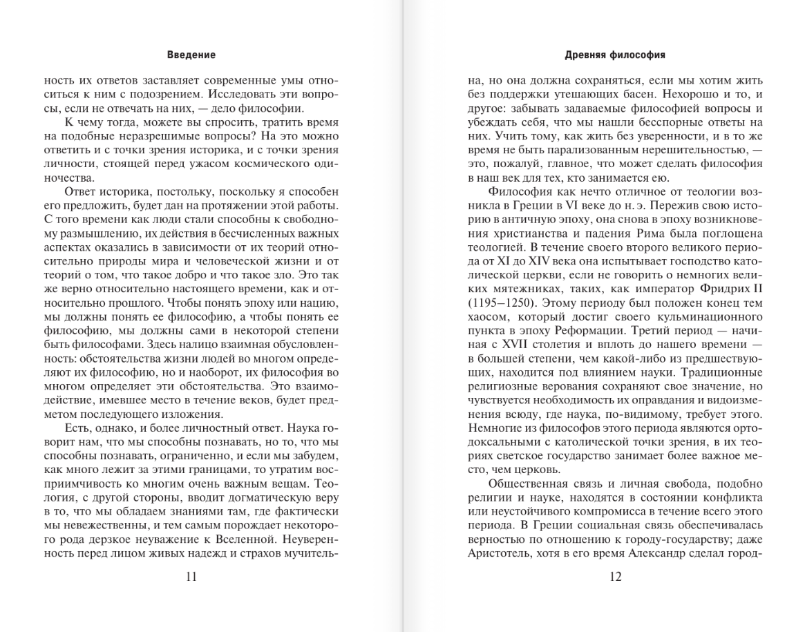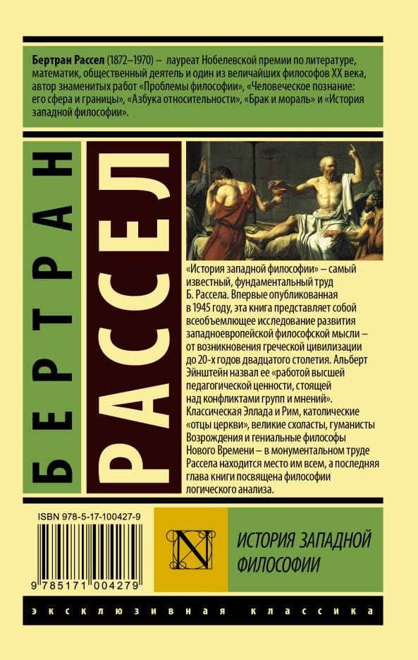 Впервые опубликованная в 1945 году, эта книга представляет собой всеобъемлющее исследование развития западноевропейской философской мысли — от возникновения греческой цивилизации до 20‑х годов двадцатого столетия. Альберт Эйнштейн назвал ее «работой высшей педагогической ценности, стоящей над конфликтами групп и мнений».