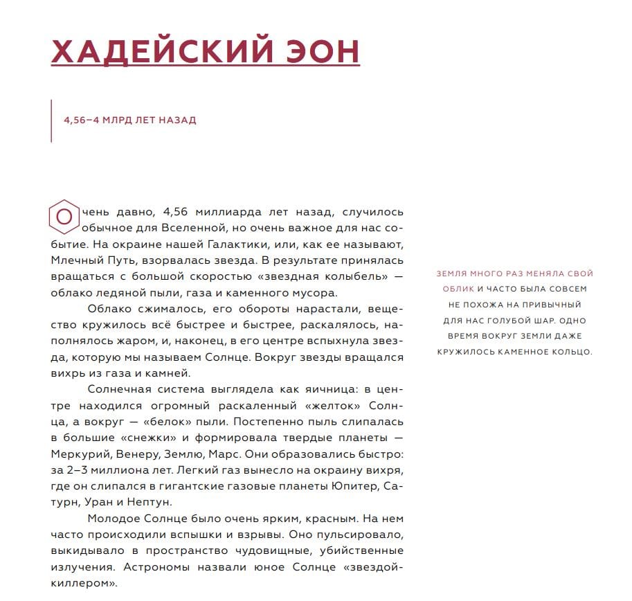 Увлекательная книга о жизни и приключениях нашей планеты. Сейчас Земля прожила больше половины своей жизни, за этот период происходили невероятные события: на нее сыпался метеорный дождь, она замерзала, а, самое главное, на ней зародилась жизнь.