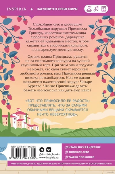 Однако планы Присциллы рушатся из-за ежегодного конкурса, на котором разворачивается безжалостная битва клубничных тортов. При этом ей и в голову не может прийти, что она сама окажется героиней любовного романа, ведь Присцилла решила никогда больше не влюбляться. Но в ее жизни появляется Чезаре Бурелло, пластический хирург, приехавший отдохнуть в свою родную деревню. Что же Присцилле делать: бежать изо всех сил или дать ему шанс?