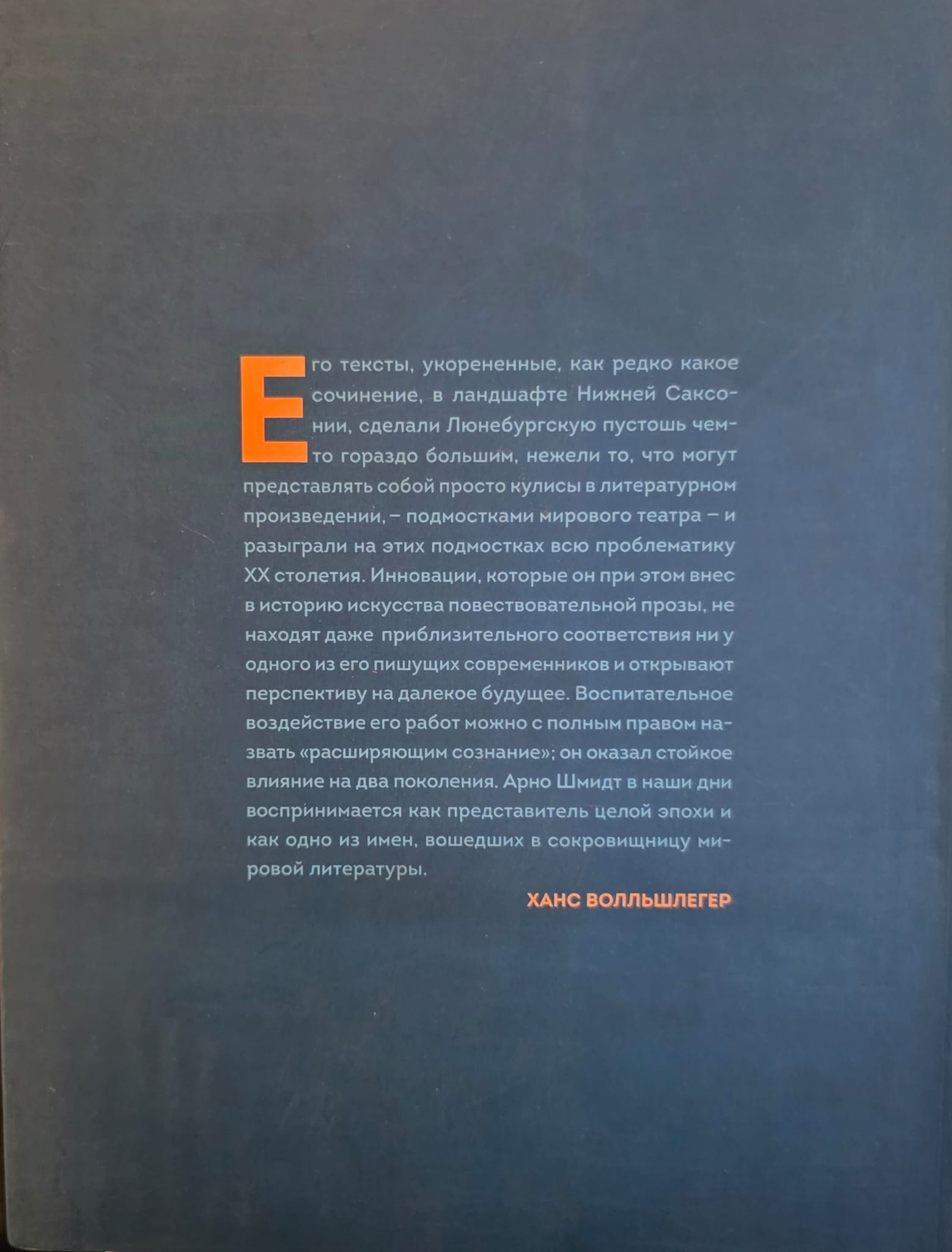 Трилогия Арно Шмидта (1914-1979) - неподражаемо точный рассказ очевидца о жизни в Люнебургской пустоши в военные и первые послевоенные годы. Клочок немецкой земли предстает в трех романах как часть большого пространства мировой истории и культуры, как место, где на равных правах с людьми обитают и действуют персонажи античной, германской и кельтской мифологии. Тексты романов печатаются с сохранением особенностей авторской пунктуации.