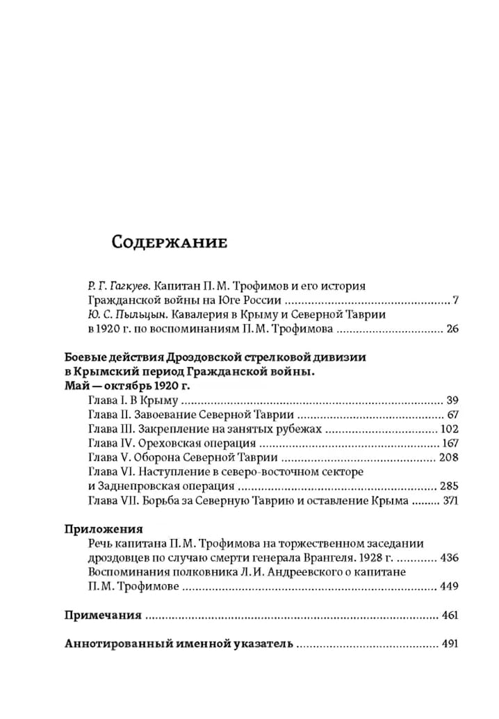 Книга капитана Павла Михайловича Трофимова — участника Белого движения на Юге России (ВСЮР) — рассказывает о завершающем этапе Гражданской войны в России: сражениях в Северном Причерноморье между ВСЮР и Рабоче-крестьянской Красной армией, состоявшихся весной — осенью 1920 г. Рукопись была закончена автором к концу 1920-х гг. в эмиграции. Ее основой послужили многочисленные документы и свидетельства участников событий, собранных автором. Трофимов, непосредственно участвовавший в событиях, не только подробно описал боевые действия, но и постарался ответить на вопрос о причинах поражения Белого движения в 1920 г.