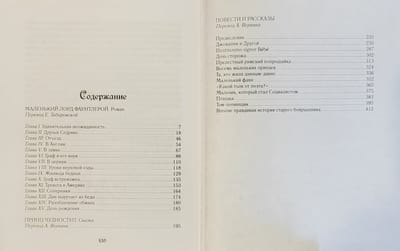 Ее книги читают во всех странах мира. Это и неудивительно! Ведь такие разные, но захватывающие повести для мальчиков и девочек по-настоящему трогают сердца читателей. Будь то история каприз- ной и нелюдимой Мери Леннокс, вынужденной после смерти родителей переехать в поместье к дяде, где она находит заброшенный сад, ухаживая за которым в компании новых друзей, меняет окружающий мир и меняется сама. Этот занимательный и трогательный сюжет «Таинственного сада» помогает просто и ненавязчиво преподать юным читателям уроки добра, справедливости, мужества, любви к природе и людям, привить восторг перед чудесами прекрасного мира. Или роман «Маленькая принцесса», в котором живо и увлекательно рассказано о перипетиях, порой драматических, в жизни юной англичанки Сары Крю, сумевшей не только в богатстве, но и в бедности сохранить доброту к людям и душевную чистоту.