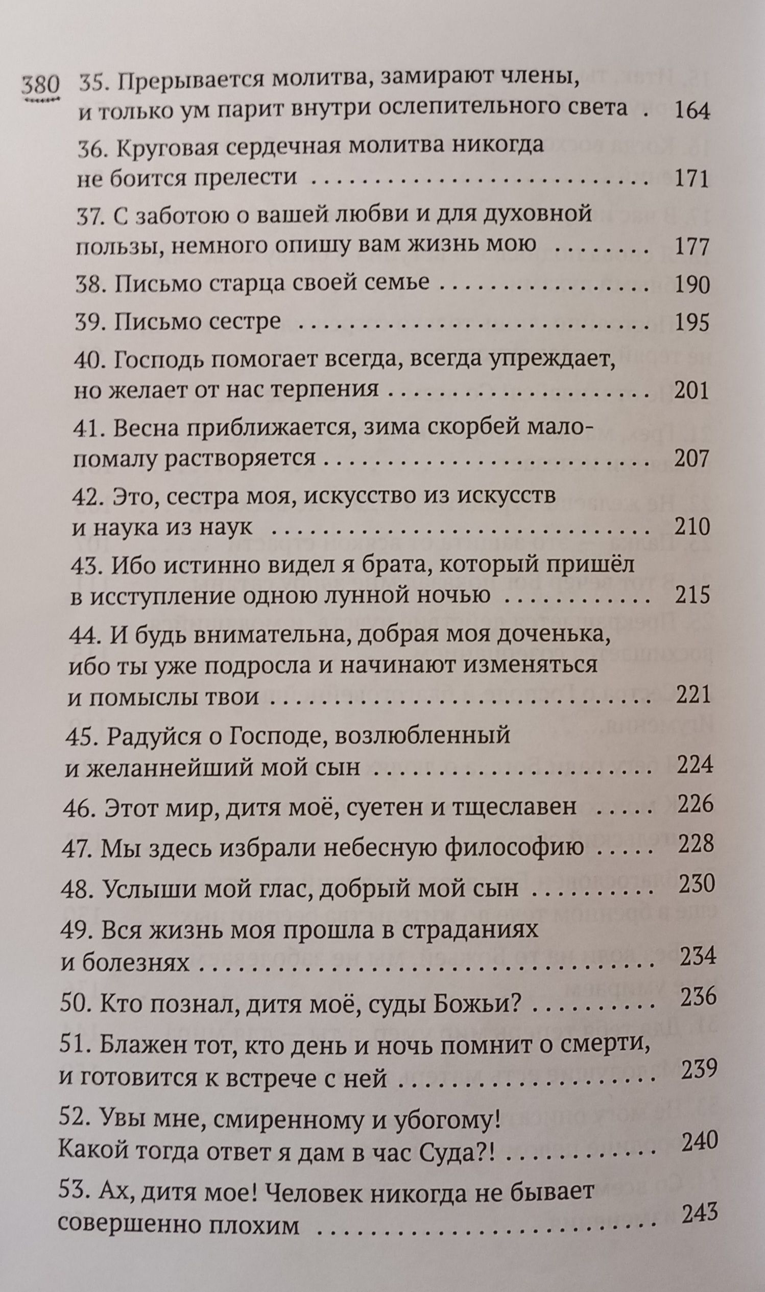 Эта книга — излияние отеческой любви подлинного наставника мирян и монахов, афонского старца преподобного Иосифа Исихаста. Каждый найдет себе в ней спасительное слово. В простых, но глубоких письмах старца открываются истины духовной жизни: почему в жизни человека нет места осуждению, как начать путь умного делания, чего остерегаться на нем; как усовершенствовать душу в повседневной жизни, как хранить мир души. Как приходит к нам благодать Божия, и как ее хранить. Вторую часть книги составляют практические наставления к монаху-исихасту, начавшему отшельническую жизнь.