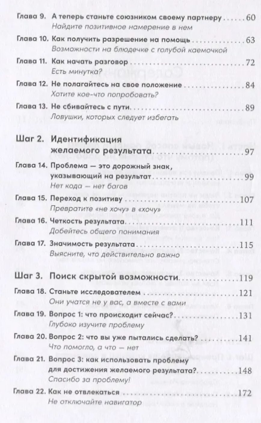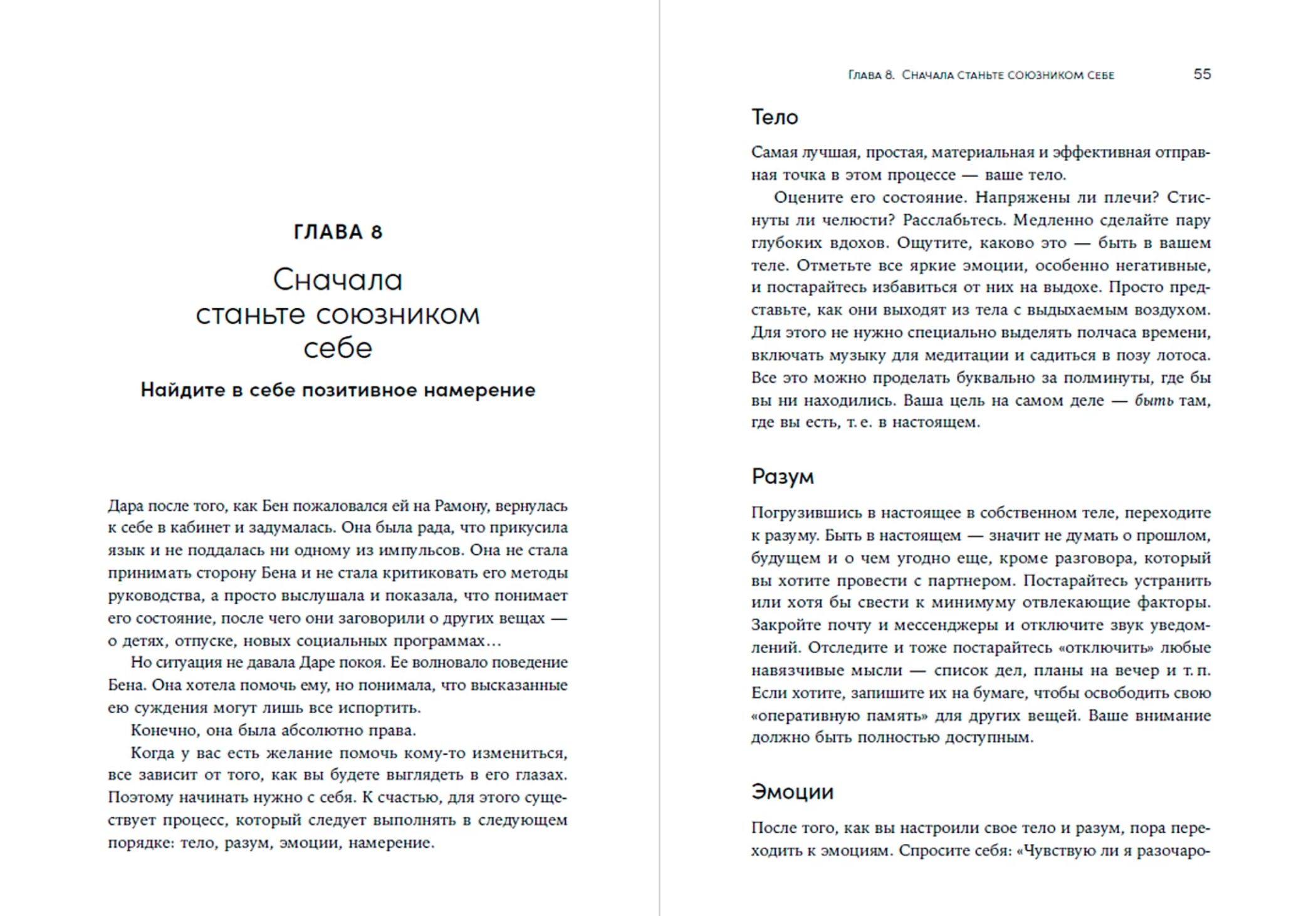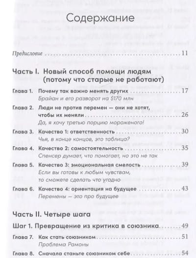 Как побудить конфликтных сотрудников работать в команде? Как раскрыть потенциал неуверенного в себе человека во благо общего дела, поддержать партнера, помочь избавиться от ложных убеждений и стать счастливее? Бизнес-коуч номер один в мире Питер Брегман и его коллега Хауи Джейкобсон уверены, что этого можно достичь за четыре шага: сначала превратиться из критика в союзника, вместе определить желаемый результат и возможности для его достижения, а затем выстроить подробный план. Прочитав их книгу, вы узнаете, как действовать, чтобы добиться доверия родственников, коллег и партнеров, внушить им уверенность в себе и помочь измениться к лучшему.