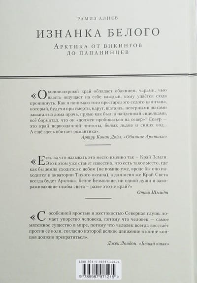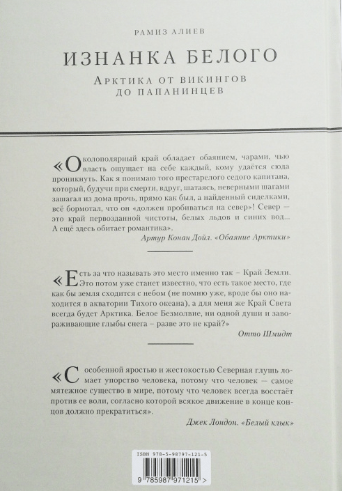 Обладая обширными знаниями в данной теме, автор рисует перед читателем объёмную картину освоения Арктики, не боясь представить собственный, иногда парадоксальный взгляд на историю и место личности в этой истории. Впервые на книжный рынок выходит работа, настолько серьёзно и глубоко анализирующая взаимоотношения Арктики и человека, причём делающая это в популярной и захватывающей форме.