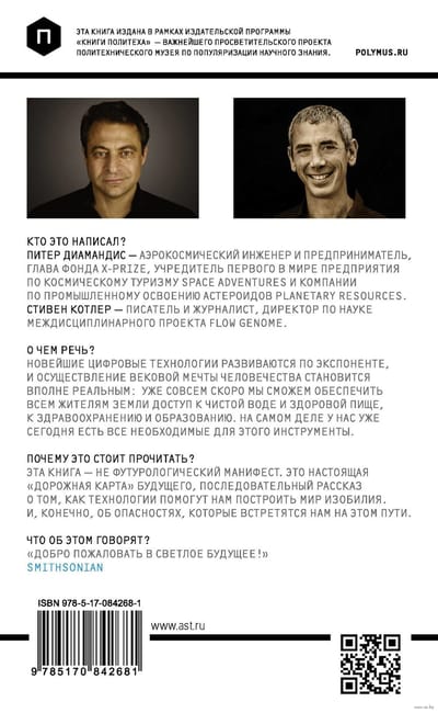 Однако перед вами — не футурологический манифест. Эта книга — настоящая «дорожная карта» будущего, последовательный рассказ о том, как технологии помогут нам построить мир изобилия. И, конечно, об опасностях, которые встретятся нам на этом пути.