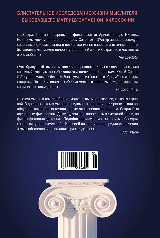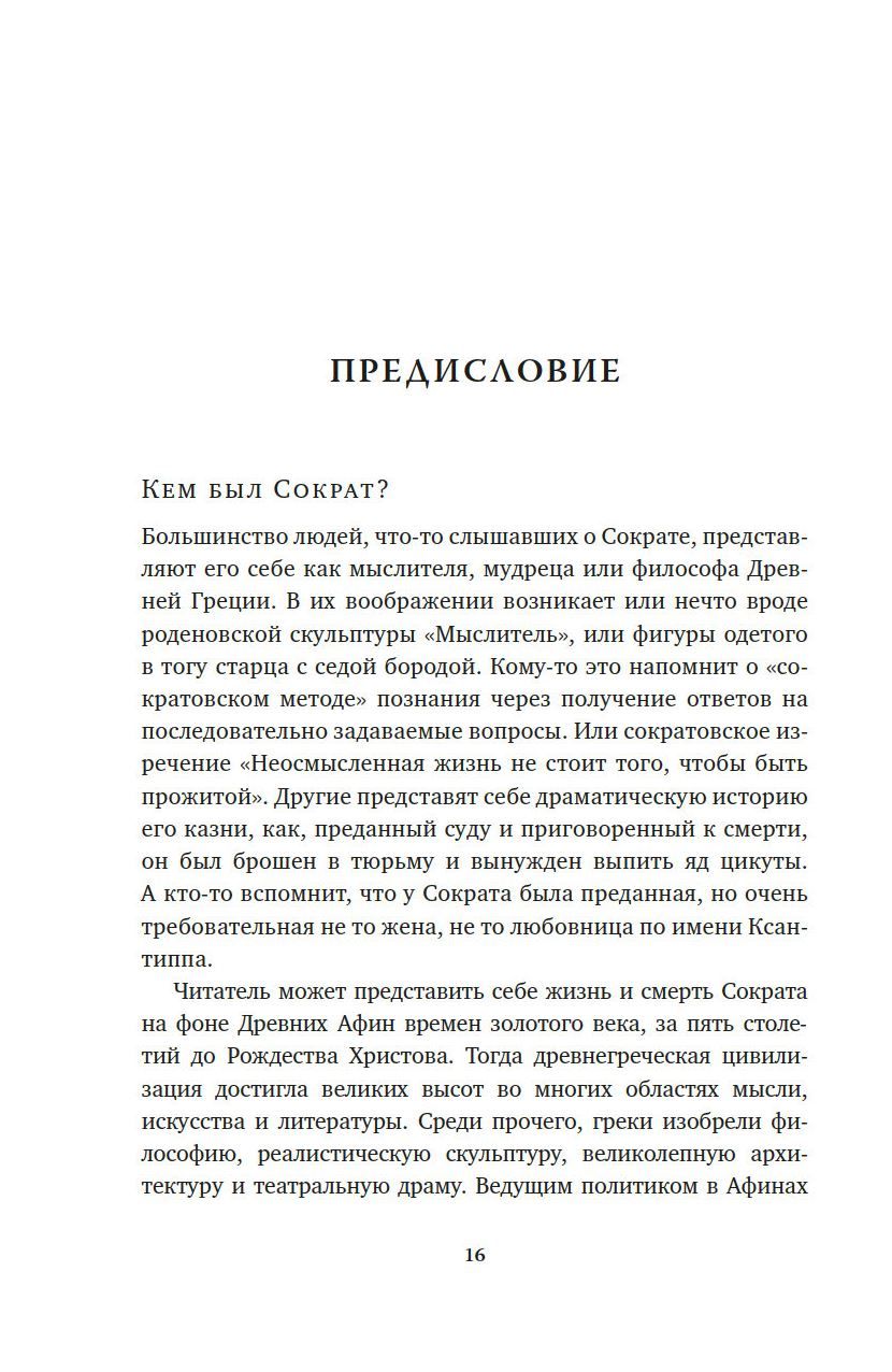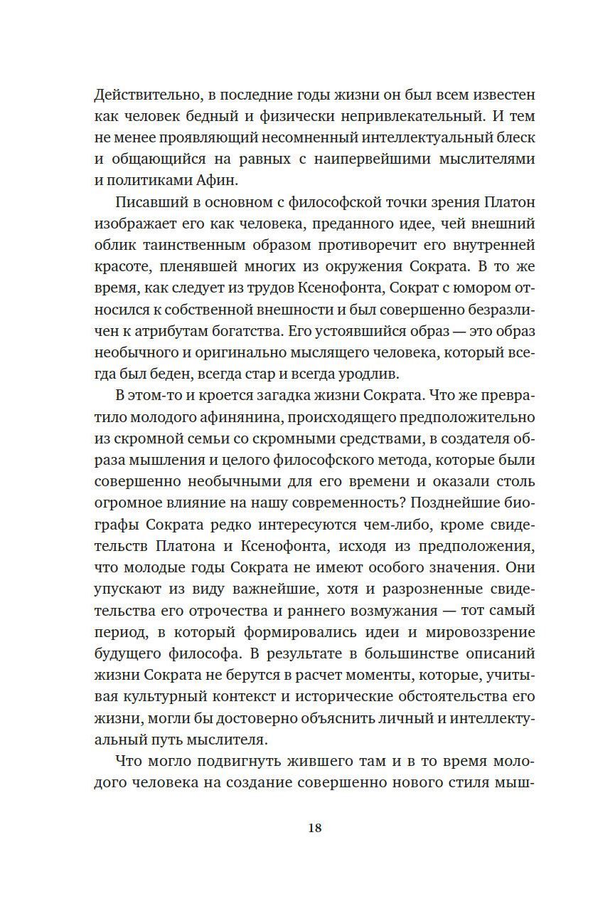Сократ — гениальный мыслитель и один из творцов европейской философии. Таким он был запечатлен в диалогах Платона, и таким мы знаем его и по сей день. Однако что за человек на самом деле скрывался за этим именем? Знакомы ли мы с настоящим Сократом? Профессор Арман Д’Ангур предлагает взглянуть под новым углом на жизнь философа. Сократ, которого заново открывает для нас автор, — это Сократ, терзаемый переживаниями и страстями, храбрый воин, атлет, любовник и мечтатель. В этом полном и подробном жизнеописании самого таинственного мыслителя Античности прослеживается его путь от юноши, впервые познавшего любовь и вкусившего знание, до зрелого мужа, чьи идеи определили ход европейской философской мысли на века вперед.