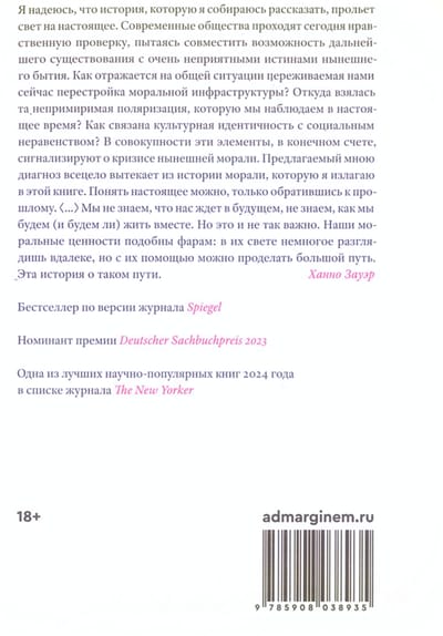 Опираясь на философские знания и эмпирические данные, немецкий философ Ханно Зауэр (род. 1983) объясняет, как процессы биологической, культурной, социальной и исторической эволюции сформировали современную нравственную грамматику. В семи главах «Изобретения добра и зла» (2023) описываются важнейшие моральные сдвиги в истории человечества и объясняется, как связаны кооперация австралопитеков, возникновение первых цивилизаций 5 000 лет назад и динамика морального прогресса за последние пятьдесят лет. Генеалогическая перспектива, с одной стороны, позволяет нам увидеть противоречия и потенциальные конфликты нашей нравственности, а с другой — ясно показывает, что мы разделяем фундаментальные ценности, применимые ко всем людям во все времена.