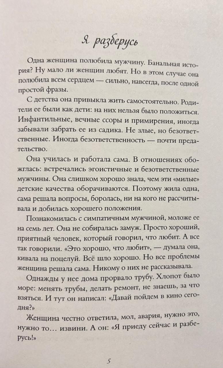 Изумрудный, тихий свет философско-психологических эссе осветит самые привычные моменты жизни, превращая их в ключи к пониманию себя, любви и внутренней опоры. Простые, но мудрые истории помогут вернуть душевное тепло, услышать голос собственной души, различить правду и самообман, заметить радость маленьких мгновений и пройти через трудности, сохранив себя. Это бережное наставничество, которое ведет от тревоги — к спокойствию, от сомнений — к ясности, от слабости — к тихой силе.