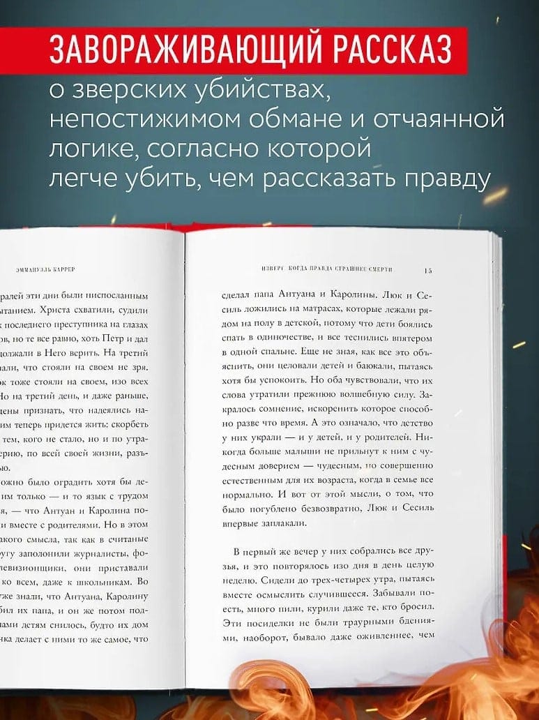«Изверг» — это завораживающий рассказ о зверских убийствах, непостижимом обмане и отчаянной логике, согласно которой легче умереть, чем рассказать близким правду.