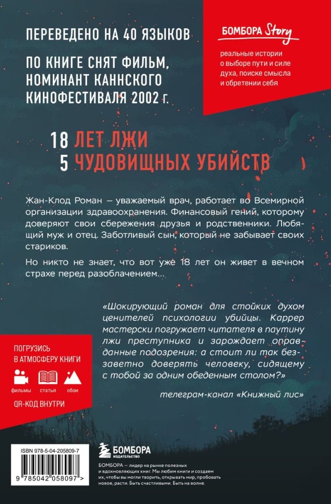 Жан-Клод Роман живет с женой и двумя детьми в уютном доме, в тихом благополучном городке на востоке Франции. Каждое утро он отвозит детей в школу, а затем едет на работу в Женеву по живописной дороге. Роман — известный врач, разрабатывает лекарство от рака во Всемирной организации здравоохранения. В Париже, куда он часто летает по работе, его встречает красивая любовница. Родители, которых он не забывает навещать, гордятся им, друзья и соседи уважают и даже немножко завидуют.