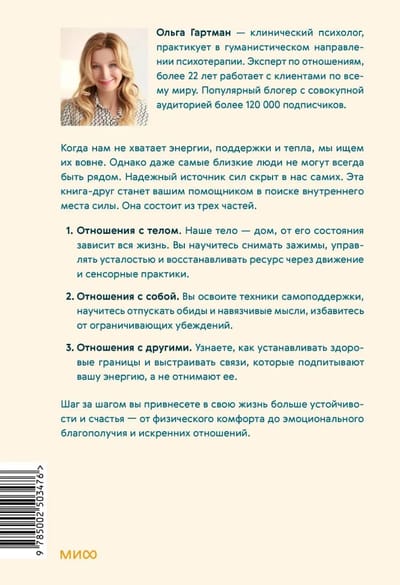 Книга клинического психолога и популярного блогера Ольги Гартман — это практичный и очень личный гид по навыкам внутренней опоры. В ней вы найдете истории автора и ее клиентов, упражнения и вопросы для саморефлексии, которые помогут: