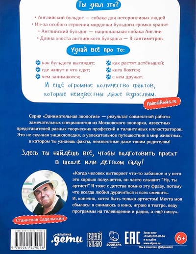 Настало время познакомиться с настоящим английским джентльменом — вежливым, скромным, честным и храбрым! Да-да, английский бульдог — это пёс-джентльмен: благородный и преданный своему хозяину. И хотя он кажется серьёзным и суровым, на самом-то деле бульдоги — добрые и ласковые. В этой книжке английский бульдог расскажет тебе о том, что он любит, а что не очень, как о нём заботиться и во что играть. А ещё он поделится с тобой своей тайной бульдожьей мечтой...