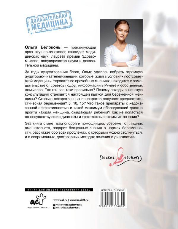 Ольга Белоконь – практикующий врач акушер-гинеколог, влюбленный в свою профессию и четко придерживающийся принципов доказательной медицины. Всего за 2 года Ольге удалось собрать огромную аудиторию читателей-женщин, которые, живя в условиях постсоветской медицины, теряются во врачебных мнениях, находятся в замешательстве от советов подруг, информации в Рунете и собственных домыслов. Так как все-таки правильно? Почему походы в женскую консультацию становятся настоящей пыткой для беременной женщины? Сколько лекарственных препаратов получает среднестатистическая беременная? 5, 10, 15? Что такое препараты с недоказанной эффективностью и какой максимум обследований должна пройти каждая женщина, ожидающая ребенка? Как не попасться на несуществующие диагнозы и трехэтажные схемы их лечения? Эта книга станет вам опорой и помощницей, убережет от лишних вмешательств, подарит бесценные знания о нормах беременности, расскажет обо всех проблемах, с которыми можно столкнуться, и о современных, достоверных методах лечения и диагностики.