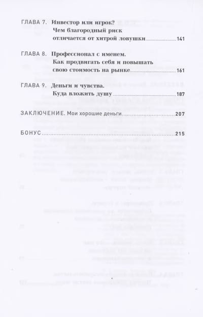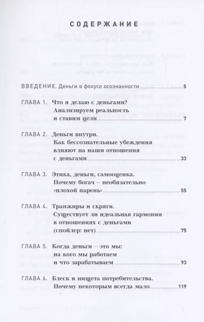 В книге есть не только теория и яркие примеры из психологической практики, но также задания и упражнения, которые помогут каждому читателю определить свои сильные и слабые стороны в денежных вопросах, выстроить индивидуальный личностно-финансовый профиль и понять, как зарабатывать, тратить, сберегать и инвестировать осознанно.