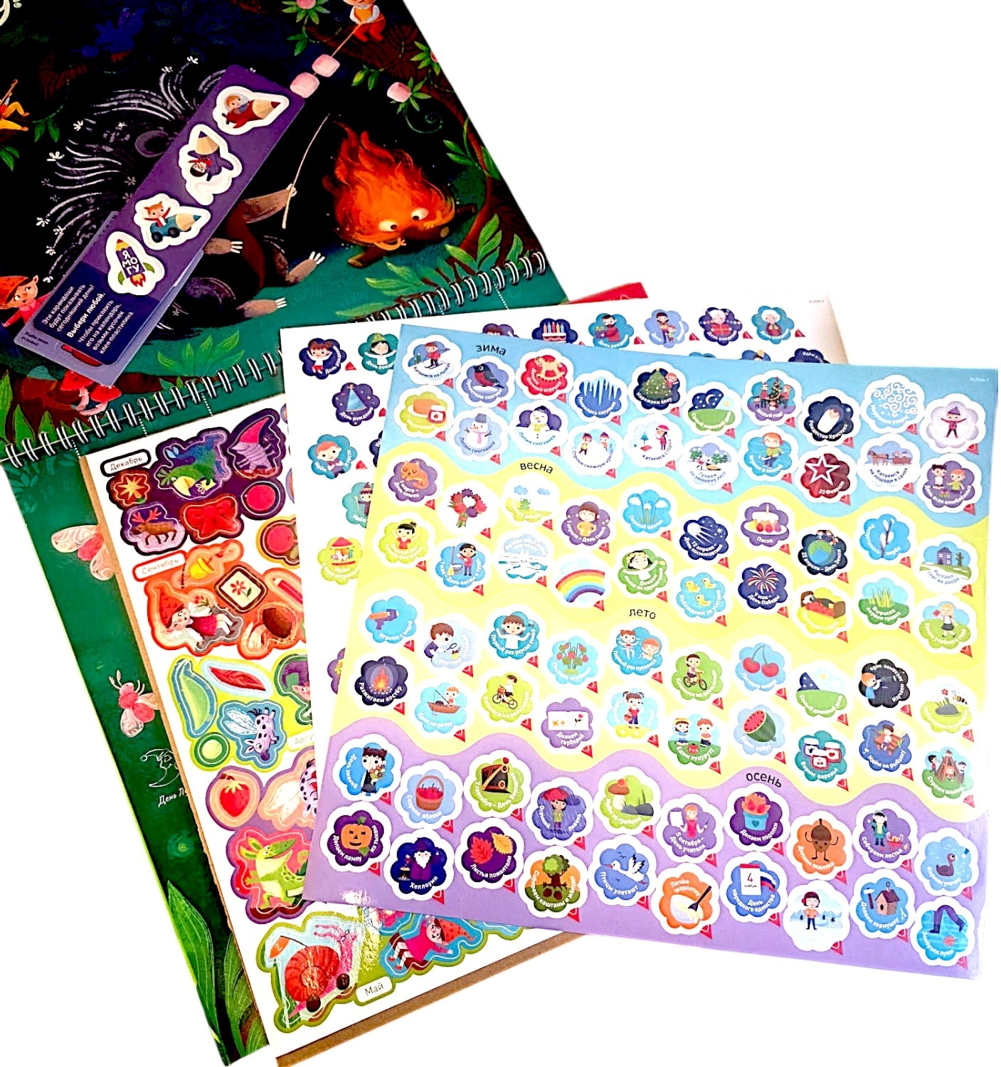 В комплекте 300 заламинированных многоразовых наклеек, которые так нравятся детям.