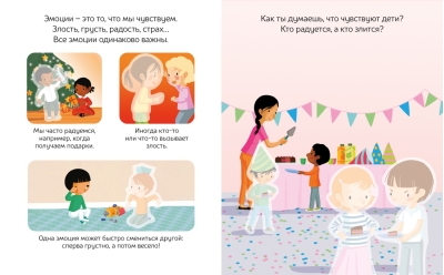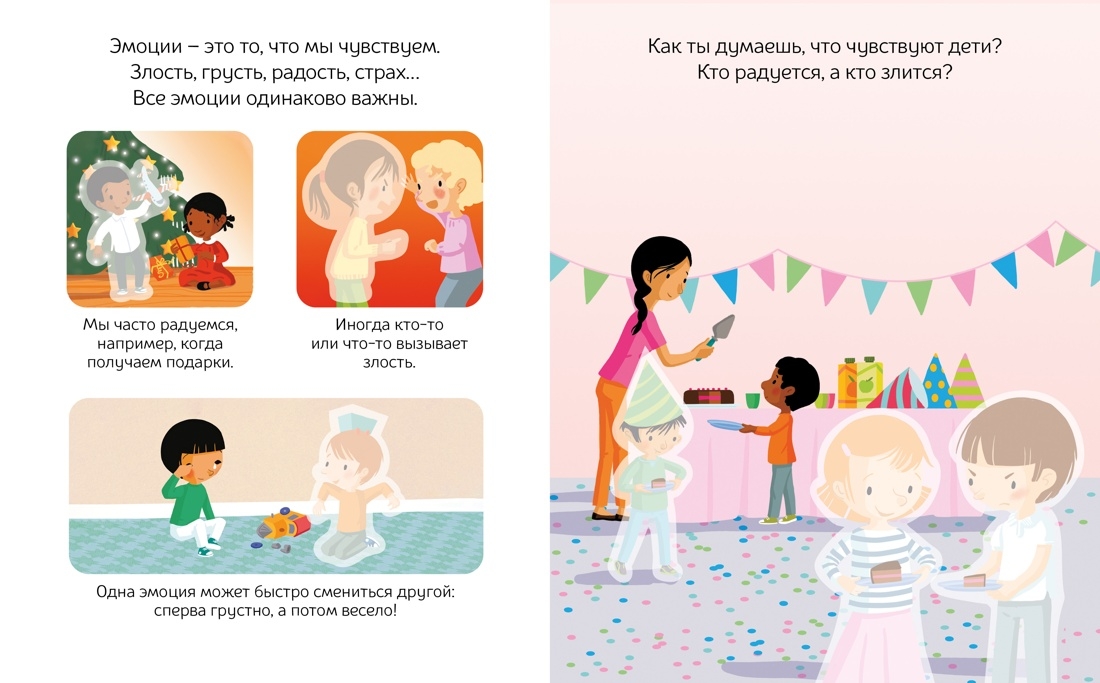 Тебе бывает грустно, весело, ты на кого-то злишься или обижаешься? Это всё – твои эмоции. Давай подберём наклейки к каждой страничке и узнаем, какие ещё бывают эмоции, как они называются и что означают, а также справимся со злостью, гневом, обидой и научимся ничего не бояться! Эта красочная книжка поможет вашему ребёнку познать окружающий мир, развить свои творческие способности, память, эмоциональный интеллект и мелкую моторику.