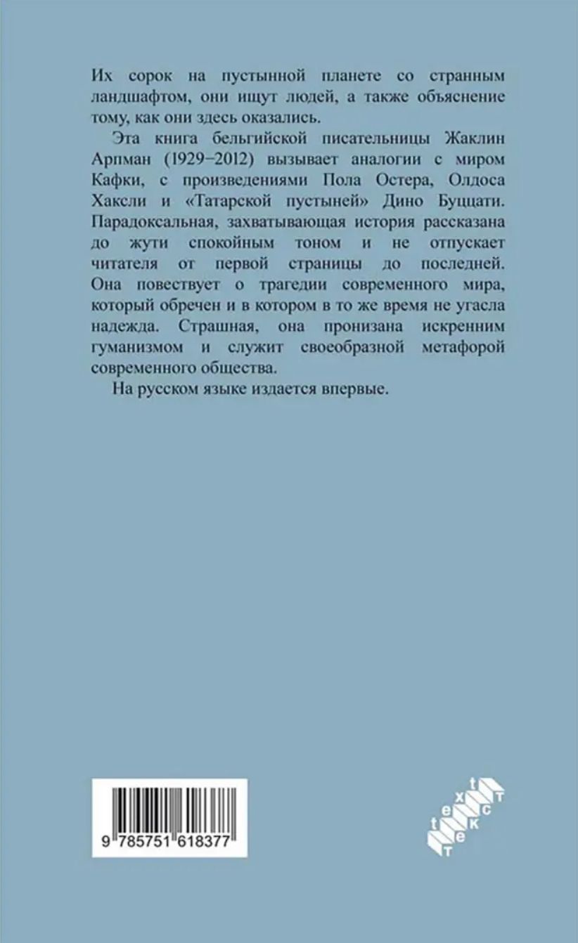Эта книга бельгийской писательницы Жаклин Арпман (1929-2012) вызывает аналогии с миром Кафки, с произведениями Пола Остера и «Татарской пустыней» Дино Буццати.