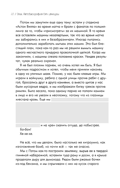 Как Оззи пришла идея начать музыкальную карьеру, как он со школьным другом мастерил самодельные бомбы, как провел два месяца в тюрьме еще до совершеннолетия или как будущий рок-гигант потерял девственность — все эти до колик смешные, грустные и вдохновляющие истории есть в этой книге.