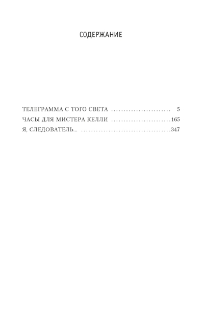 Все вошедшие в сборник произведения («Телеграмма с того света», «Часы для мистера Келли», «Я, следователь…») послужили основой для популярных теле- и кинофильмов.