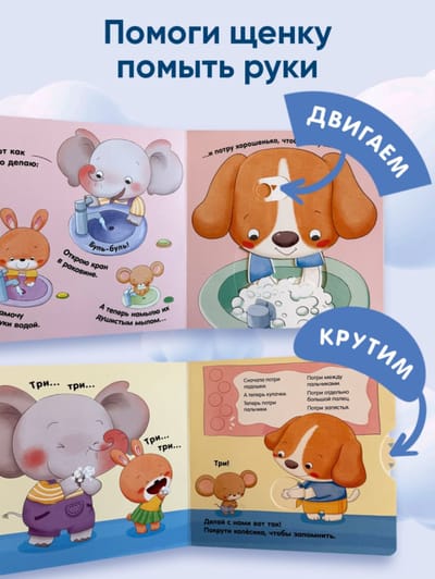 Серия книг о полезных привычках с подвижными деталями и интерактивными элементами для малышей!