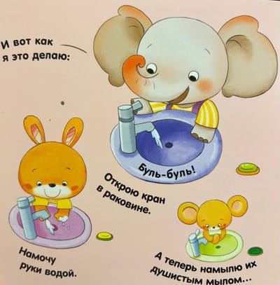 Маленькие зверята в игровой форме изучают правила гигиены. На их примере ребёнок узнает, когда нужно мыть ручки и как правильно это делать.