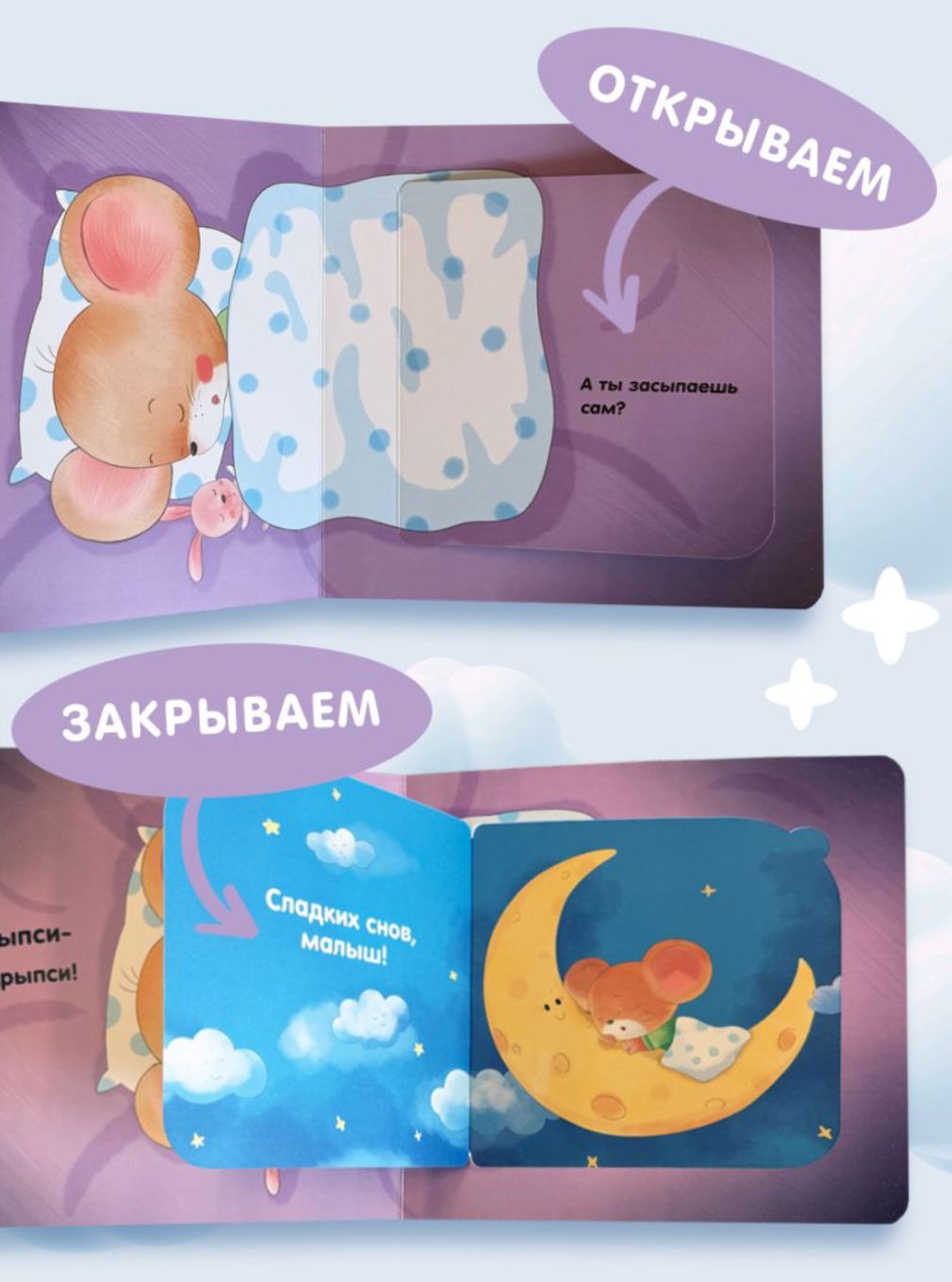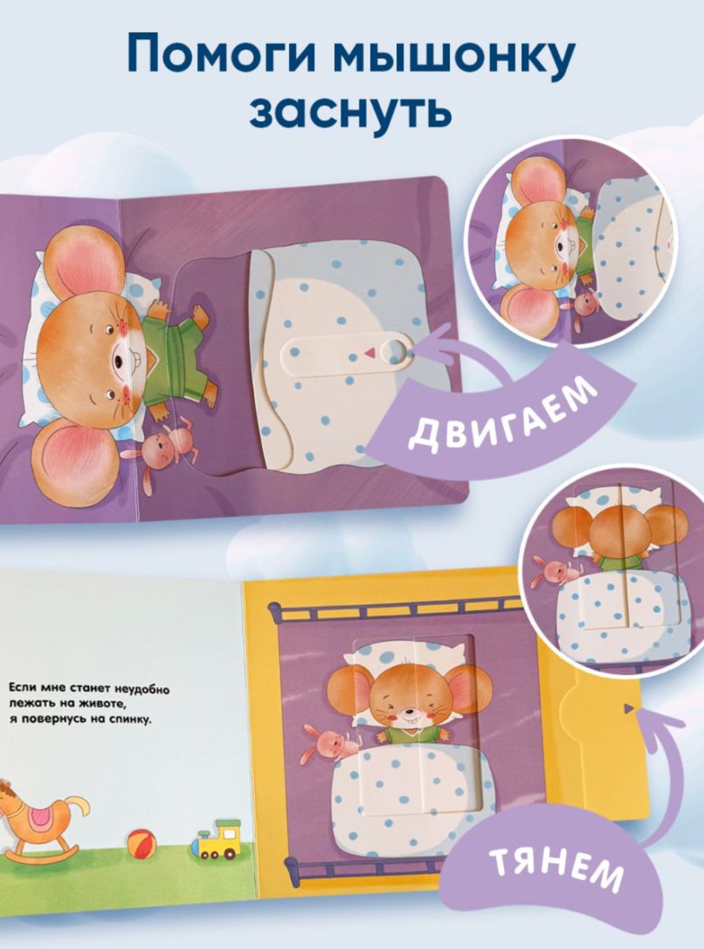 Яркие и выразительные иллюстрации и интересные детали превращают чтение в захватывающую игру. Малыш сможет тянуть выдвижные панельки и открывать окошки, развивая мелкую моторику и проявляя любознательность.
