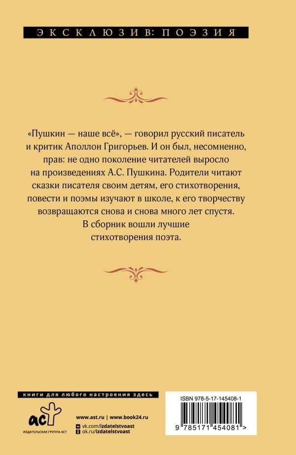 «Пушкин — наше всё», — говорил русский писатель и критик Аполлон Григорьев. И он был, несомненно, прав: не одно поколение читателей выросло на произведениях А.С. Пушкина. Родители читают сказки писателя своим детям, его стихотворения, повести и поэмы изучают в школе, к его творчеству возвращаются снова и снова много лет спустя.