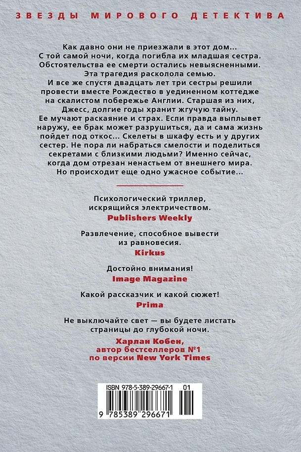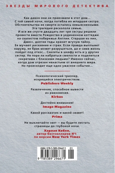Как давно они не приезжали в этот дом... С той самой ночи, когда погибла их младшая сестра. Обстоятельства ее смерти остались невыясненными. Эта трагедия расколола семью. И все же спустя двадцать лет три сестры решили провести вместе Рождество в уединенном коттедже на скалистом побережье Англии.
