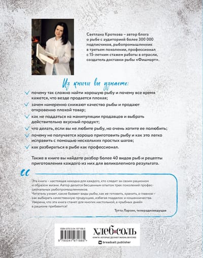 Из книги вы узнаете: - Почему так сложно найти хорошую рыбу и почему все время кажется, что везде продается плохая. - Зачем намеренно снижают качество рыбы и продают откровенно плохой товар. - Как не поддаться на манипуляции продавцов и выбрать действительно вкусный продукт. - Что делать, если вы не любите рыбу, но очень хотите ее полюбить. - Почему не получается хорошо приготовить рыбу и как это легко исправить с помощью нескольких простых шагов. - Как разбираться в рыбе как профессионал. Также в книге вы найдете разбор более 40 видов рыб и рецепты приготовления для каждого из них для великолепного результата.
