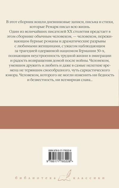 В этот сборник вошли дневниковые записи, письма и стихи, которые Ремарк писал всю жизнь.