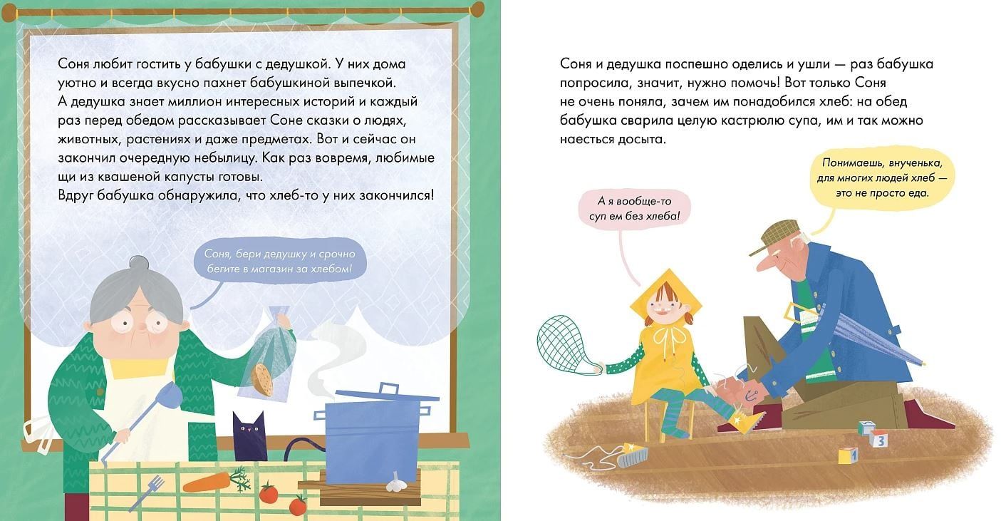 Почему некоторые люди едят все вприкуску с хлебом? Дело в том, что испокон веков хлеб был не просто едой, а основным продуктом, символизирующим достаток, здоровье и связь поколений. Вместе с главной героиней Соней и ее дедушкой вы узнаете историю хлеба и его значение для людей разных культур, о видах и способах приготовления хлеба, а также о том, сколько же его нужно есть на самом деле и чем он полезен для нашего организма.