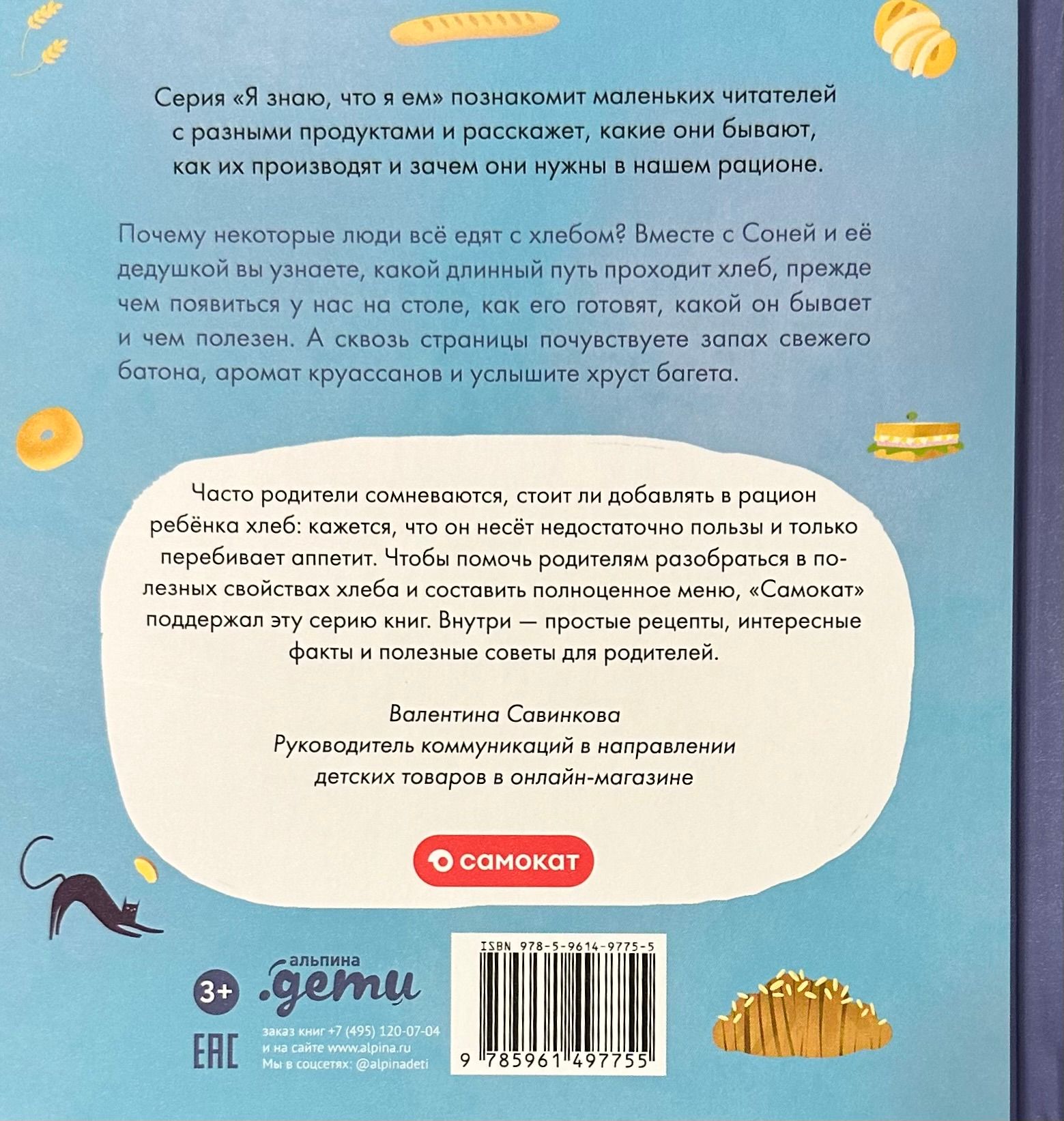 В конце книги есть несколько рецептов с хлебом и из теста, а также гид для родителей, который расскажет, как нормировать количество хлебобулочных изделий в рационе ребенка.