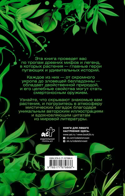 Узнайте, что скрывают знакомые вам растения и погрузитесь в атмосферу мистических загадок благодаря уникальным авторским иллюстрациям и вдохновляющим цитатам из мировой литературы.