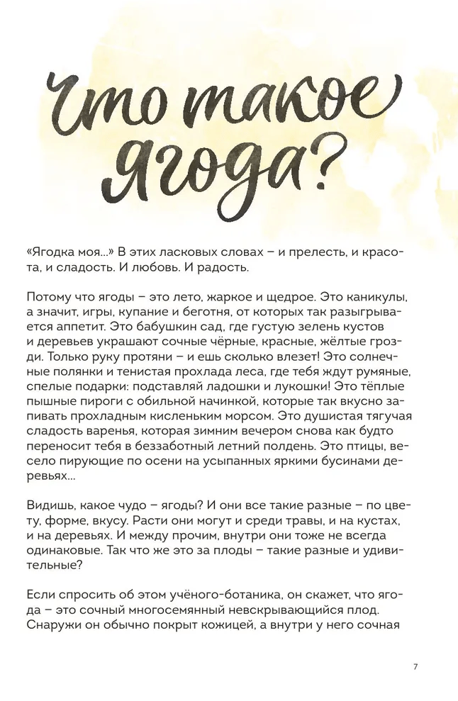 В этой книге вы найдете все самое интересное о ягодах: что это такое, чем ягода отличается от фрукта, какими бывают ягоды, откуда произошли, где растут, все ли ягоды можно собирать, кто ими питается и многое другое. Советы по сбору и заготовке, рецепты вкуснейших блюд и ягодный календарь будут полезны для семейного досуга.
