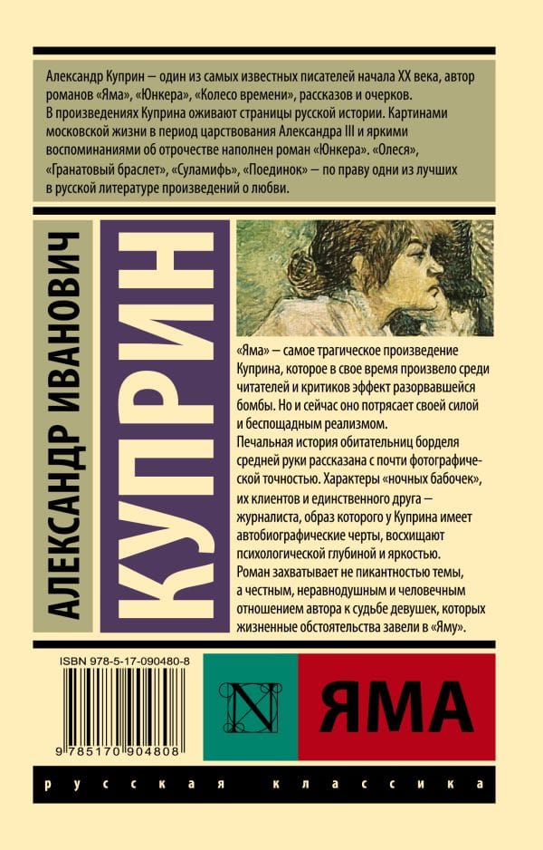 Классик русской прозы, автор знаменитых повестей «Олеся» и «Гранатовый браслет» Александр Куприн впервые опубликовал «Яму» в 1909 году. Произведение о жизни обитательниц публичных домов вызвало мощную полемику среди современников. К подобной теме еще никто в отечественной литературе не подходил с таким хладнокровием. «Проституция — это еще более страшное зло, чем война, мор и так далее», — был убежден Куприн.