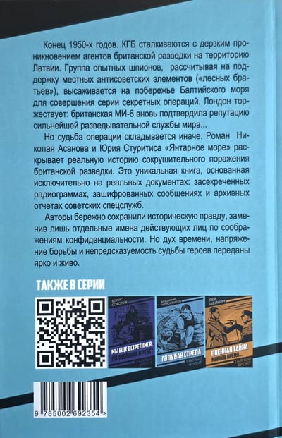 Роман Николая Асанова и Юрия Стуритиса «Янтарное море» раскрывает реальную историю сокрушительного поражения британской разведки. Это уникальная книга, основанная исключительно на реальных документах: засекреченных радиограммах, зашифрованных сообщениях и архивных отчетах советских спецслужб. Авторы бережно сохранили историческую правду, заменив лишь отдельные имена действующих лиц по соображениям конфиденциальности. Но дух времени, напряжение борьбы и непредсказуемость судьбы героев переданы ярко и живо.