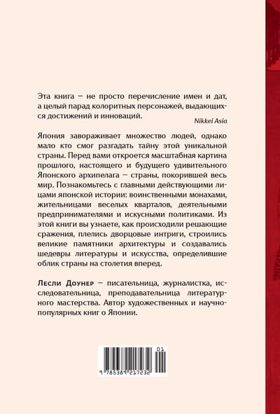 В этой книге, напоминающей увлекательный приключенческий роман, эксперт по японской культуре Лесли Доунер, прожившая в стране более десяти лет, отвечает на множество вопросов. Вы познакомитесь с царицей-шаманкой Химико, поэтом Басё, художниками Утамаро и Хокусаем и другими знаменитыми японцами — людьми, сделавшими Японию такой, какой мы знаем ее сейчас.